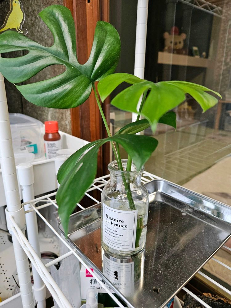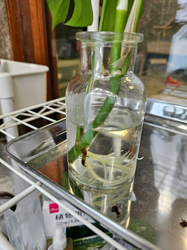 水に差しておいたモンステラから根っこがわさわさ~♥️