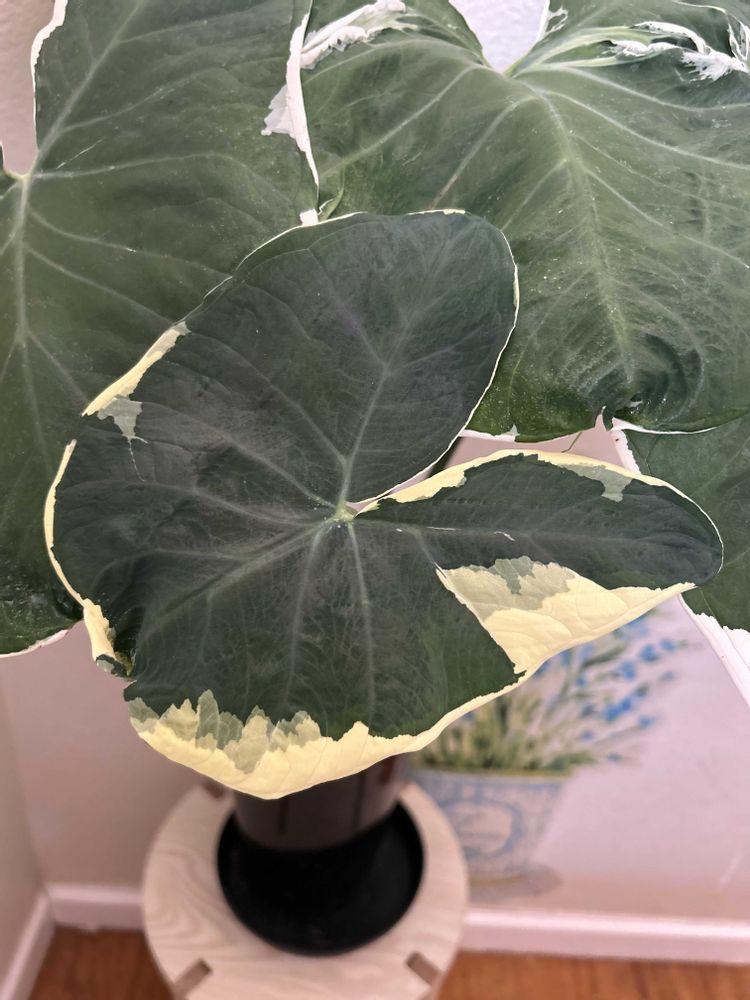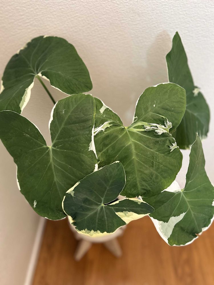 2025.8月に某サイトで購入した【アロカシア チャイ】の 突然変異?なんだろう 購入時、元々有った葉を(1枚目の葉)として、 下から新たな葉が出てきてる状態で到着しました(2枚目の葉) こちらに来て初めて出てきた葉に異変が。。 育て始めて出てきた初めての3枚目、4枚目 (途中から、斑1、斑2、、と続きます) どこまでこの謎の斑入葉が続くのか、 いや止まるのか……記録していきます