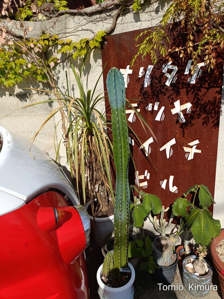 近所の花屋さんで見かけたサボテン(中央奥の背の高い柱状サボテン)です。