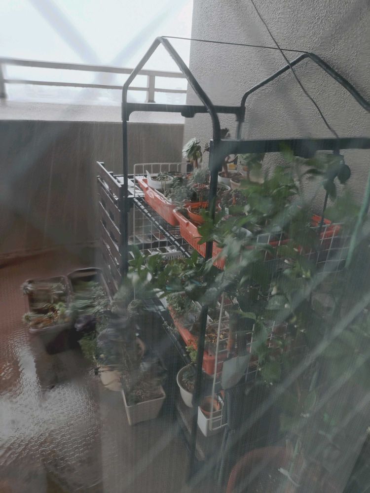 うちのベランダの多肉ちゃん達は、土カラカラだったから、雨でお水やり〜って思ってたけど、予想以上に降ったから、乾かなかったらどうしようって心配中💦😅