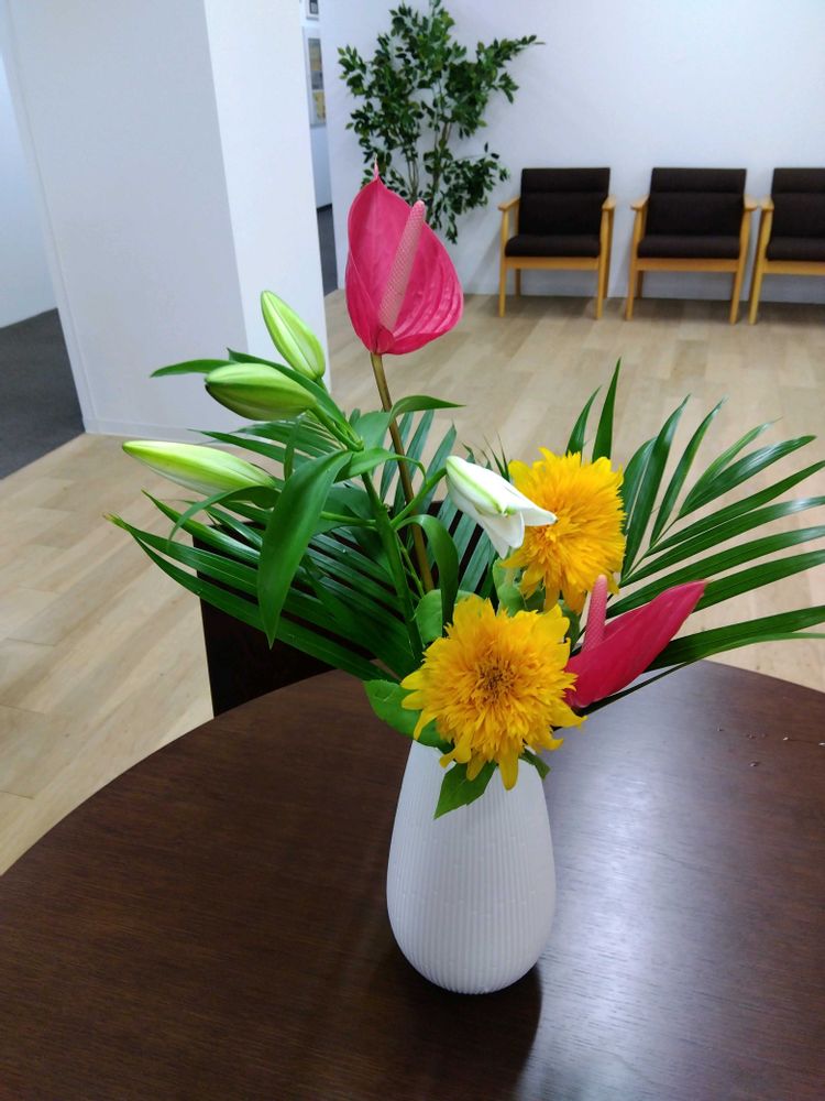 ユリやヤシ、🌻とアンスリウムで夏らしく🌴