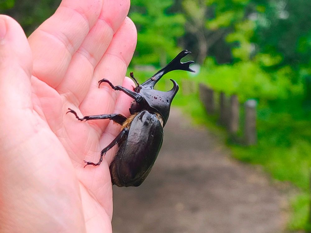 久しぶりにカブトムシを触りたくなったのでちょっとだけ私の手に来てもらうことに🥳