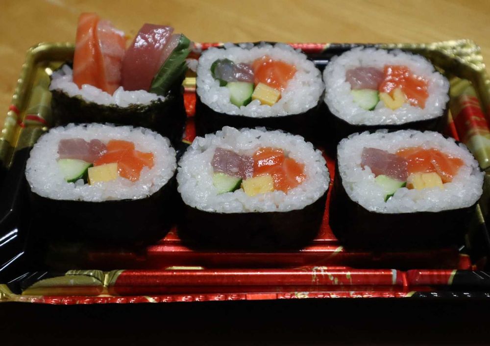 巻き寿司の鮭のオレンジがいい色してますね🧡 マジ美味しそうです🤤💦