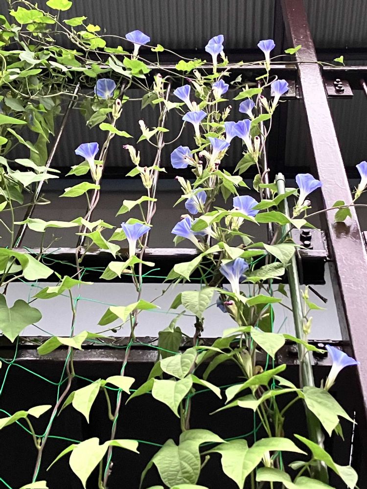 プレハブの2階のフェンスまで伸びて屋根まで届きそうです