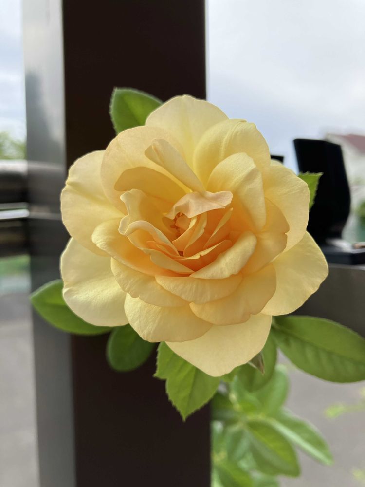 伸びて洗濯竿の上にバラがこんにちは😃