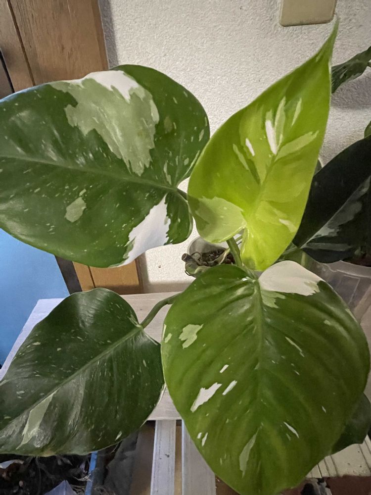 2025.8月に某サイトで購入した【アロカシア チャイ】の 突然変異?なんだろう 購入時、元々有った葉を(1枚目の葉)として、 下から新たな葉が出てきてる状態で到着しました(2枚目の葉) こちらに来て初めて出てきた葉に異変が。。 育て始めて出てきた初めての3枚目、4枚目 (途中から、斑1、斑2、、と続きます) どこまでこの謎の斑入葉が続くのか、 いや止まるのか……記録していきます