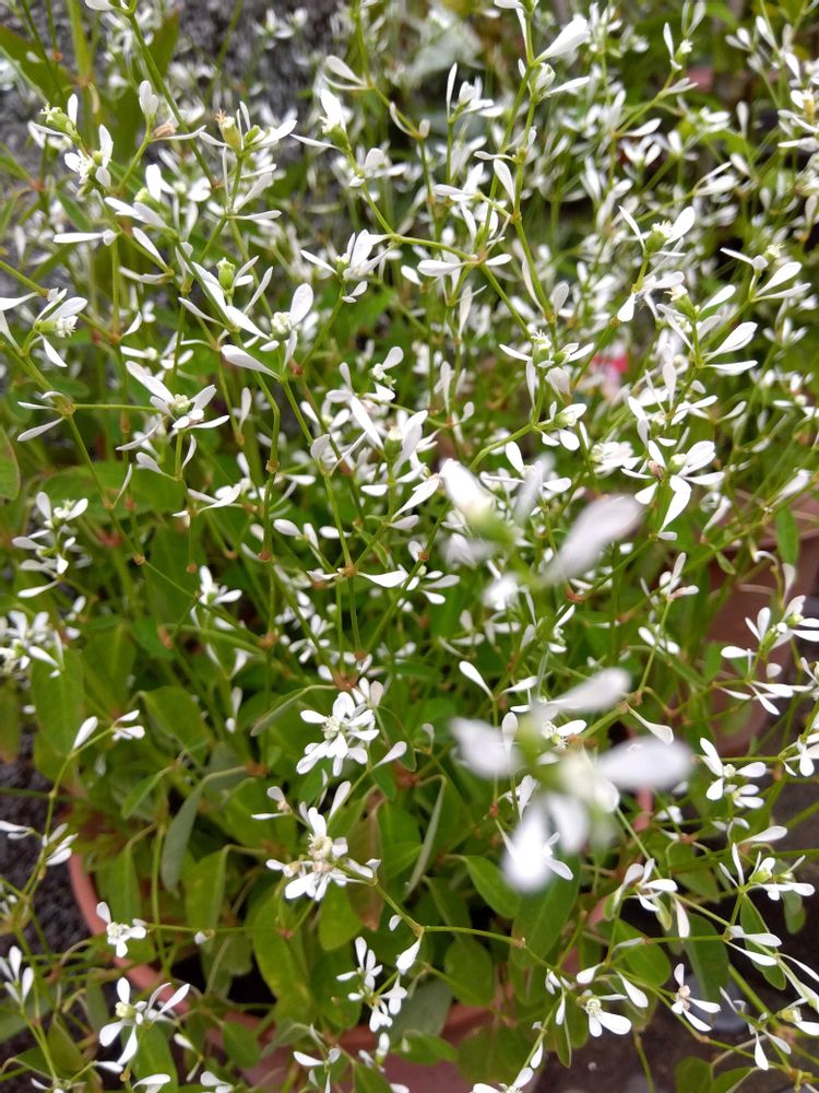 ユーフォルビアの可憐な白さが挿し木からの鉢花暑さ🥵に負けずに頑張って咲いてます🥰