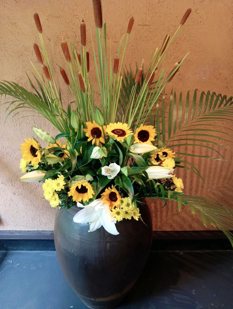 箱根湯本湯さろへ、いってきました🎶🎶ウエルカムフラワーの中に、今日のお花のガマの穂が🧡🎶🎶
