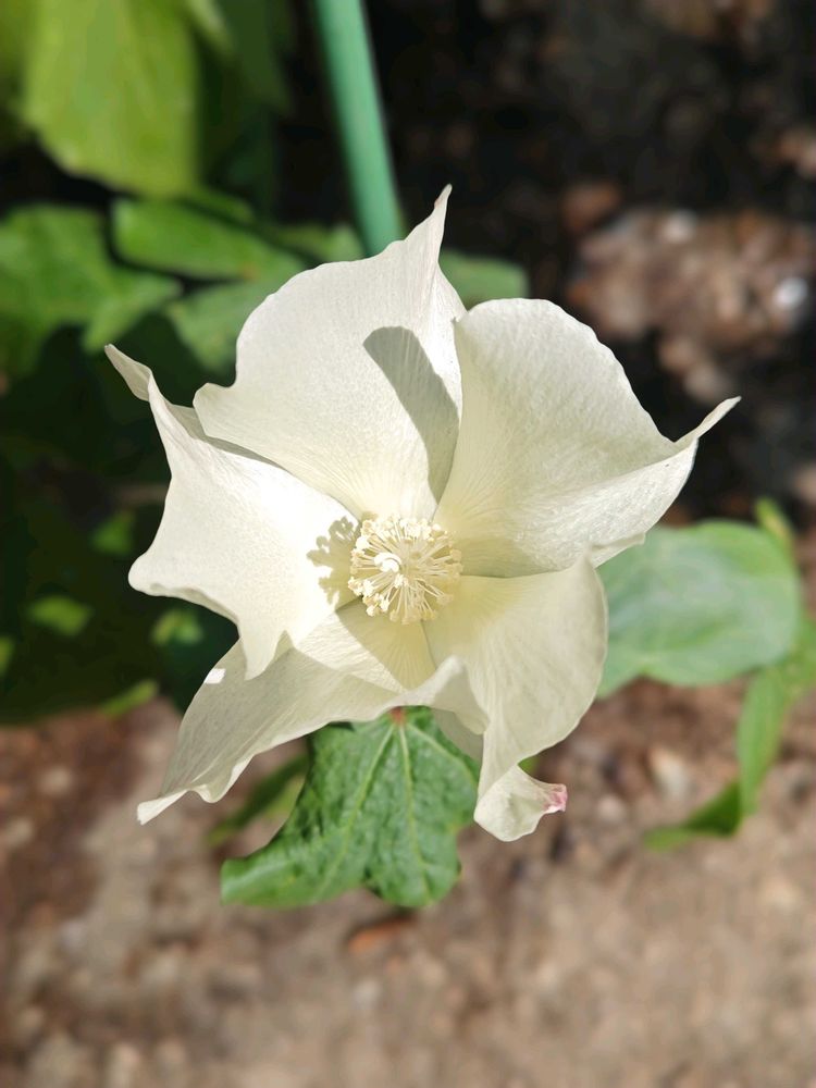 公園で育てる綿の花が、綺麗に咲いてます✨️(2025/8/6)。綿は、年末のリース講習会の時の材料になります。