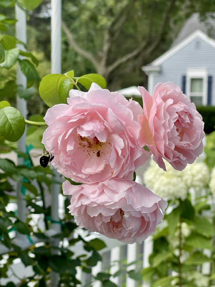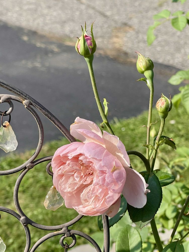 同じくストームで散った花殻や折れた枝を整理しても、頭上でぶらんぶらん揺れて咲いています
