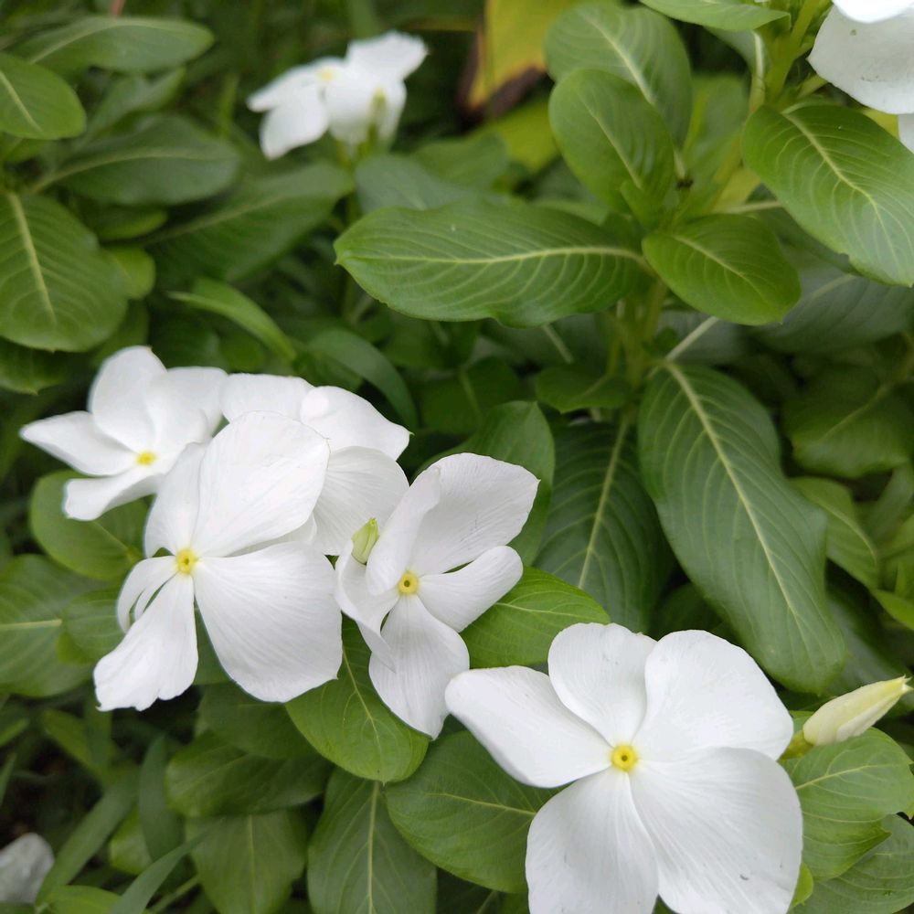 ニチニチソウ🤍🤍🌿の花にも…🚶♀️🚶♀️🚶♀️…
