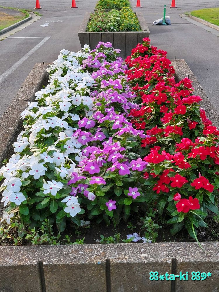 ニチニチソウがお出迎え🤍🩷❤
