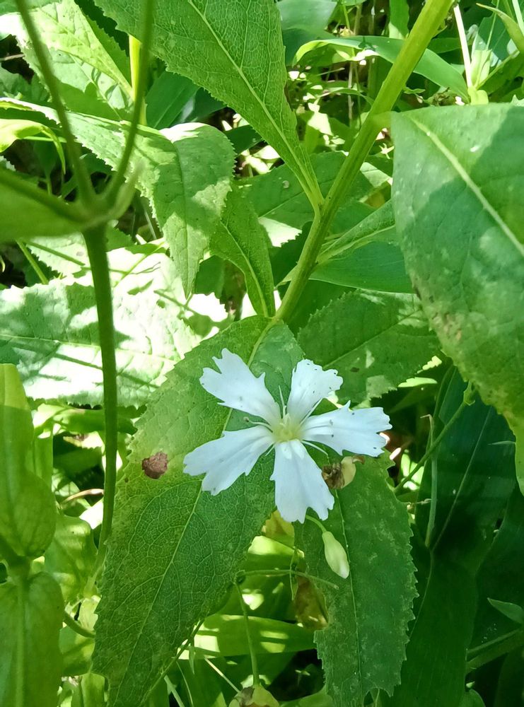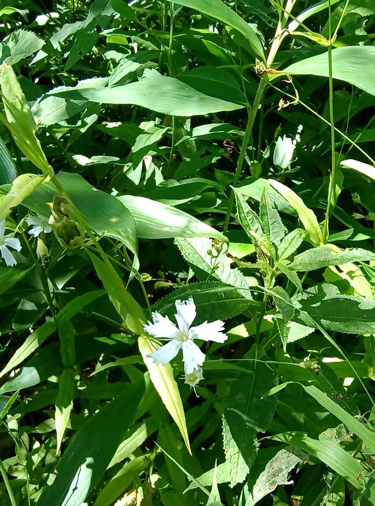 本州の山地~亜高山帯の林縁や森林に生える。 高さ30~100cm。花期は7~8月、花は白色で直径2cmほど、花弁の縁がギザギザになっている。