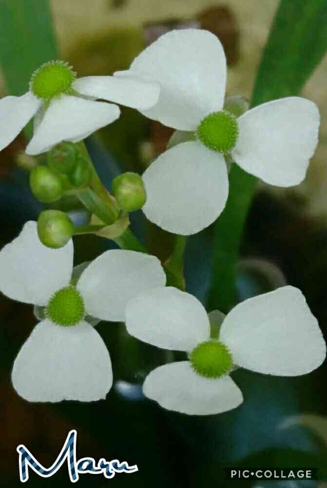 メダカ、オモダカの根元の辺りスイスイ~🎵多分?きっと見上げて、花見てると思うわ~(笑)(о'▽^o)/♪"