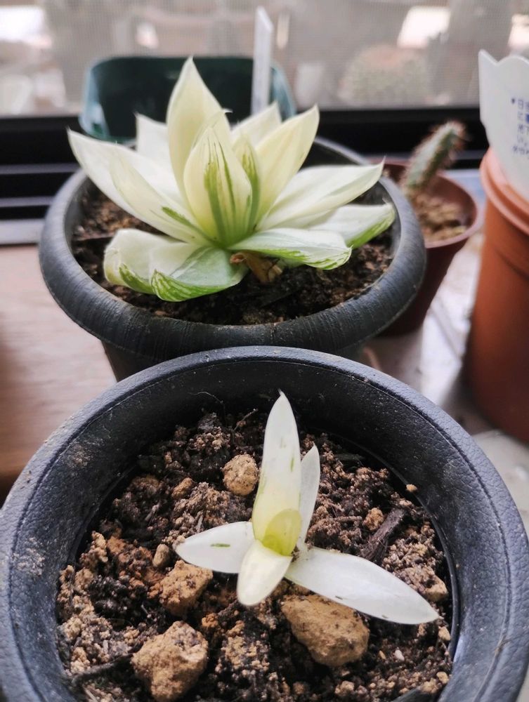 ハオルチアはお正月にくじ引きで当たったもので無事大きくなってました。白いのでちょっと心配してましたが💦今のところ大丈夫そうです☺️