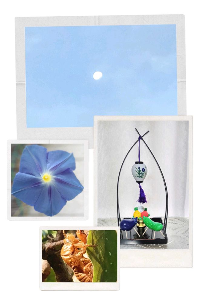 名残りの寝待月🌖、ヘブンリーブルーの一番花、蝉の抜け殻(アブラゼミ)