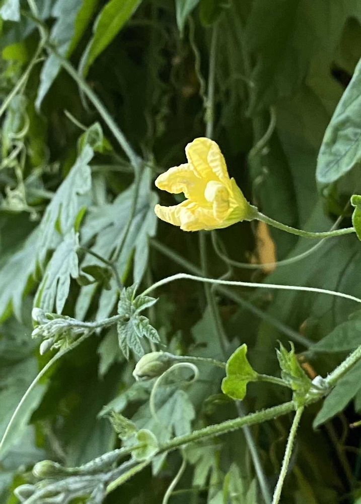 ゴーヤカーテンの中に、ポツンとひとつだけのお花💛💚