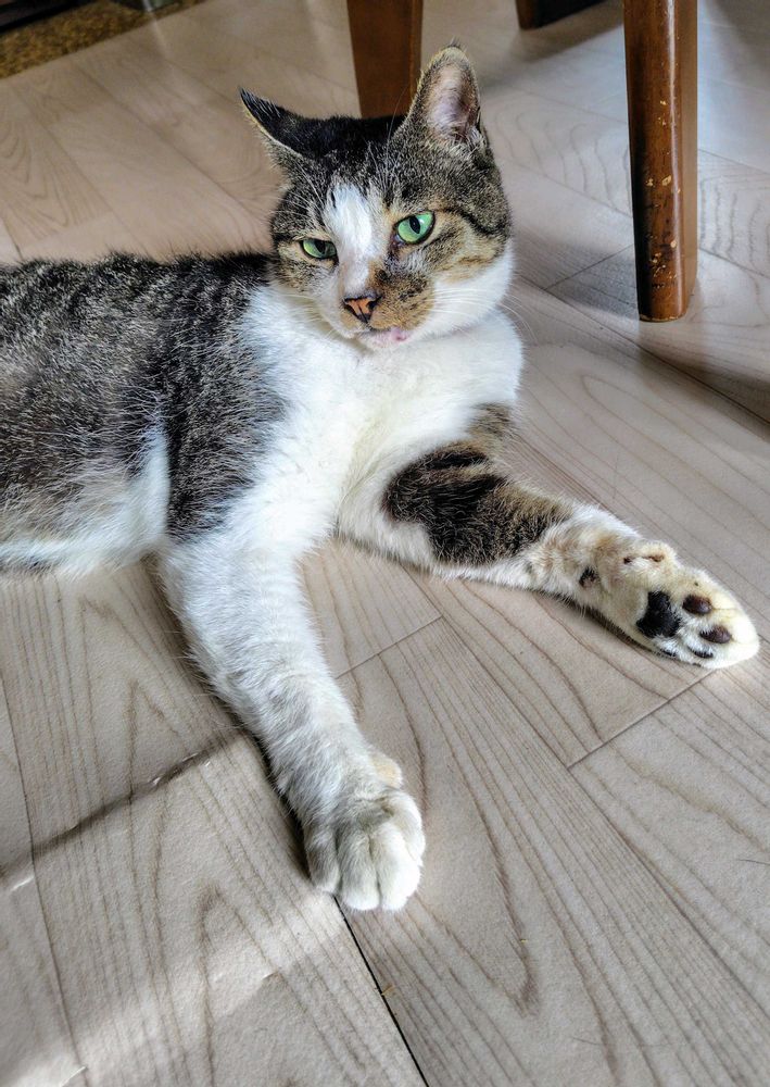 キッチンで寝そべって待ってたよ🐱( *^艸^)♡ ̖́-