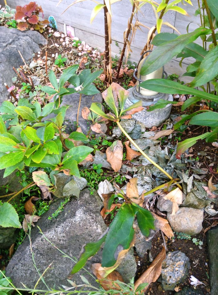 ④酷暑で枯れてしまったと思っていたクリスマスローズ