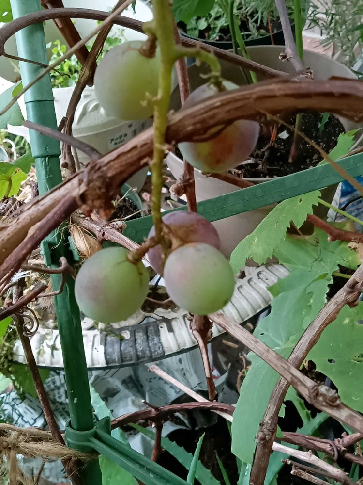 ③鉢植えの巨峰、今年は水切れで収穫が少ないですが色付いて来ました✨️🍇