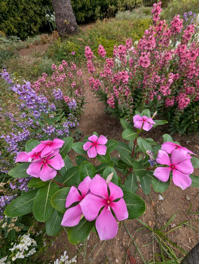 アンゲロニアの中にこぼれ種のニチニチソウ💕