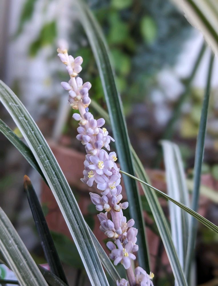 ④我が家の斑入りヤブランはヒメヤブランより遅く9月中旬に咲きます🌿🤍💜🤍🌿