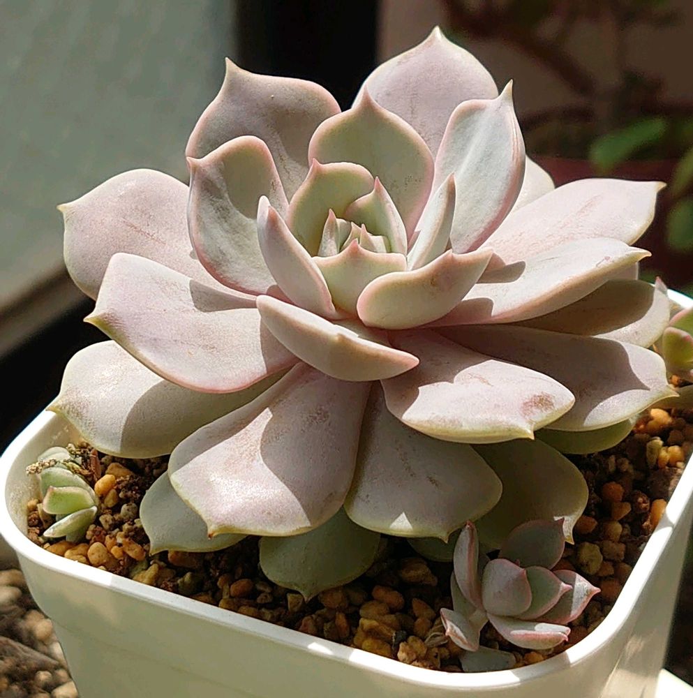 色白ローラちゃんも可愛かったですが、徒長しちゃって冬にカットしたら、今年は薄っすらピンクになりました🤗