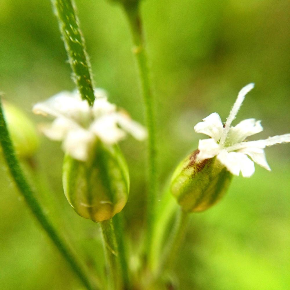 ④ナデシコ科マンテマ属の多年草 草丈がひょろっとして揺れていたので100均マクロレンズでやっと撮りました😆 花の形が可愛い~😍 節が黒く、茎が毛羽立っている事からの名前 昨年秋に植栽されたばかりです😌💓