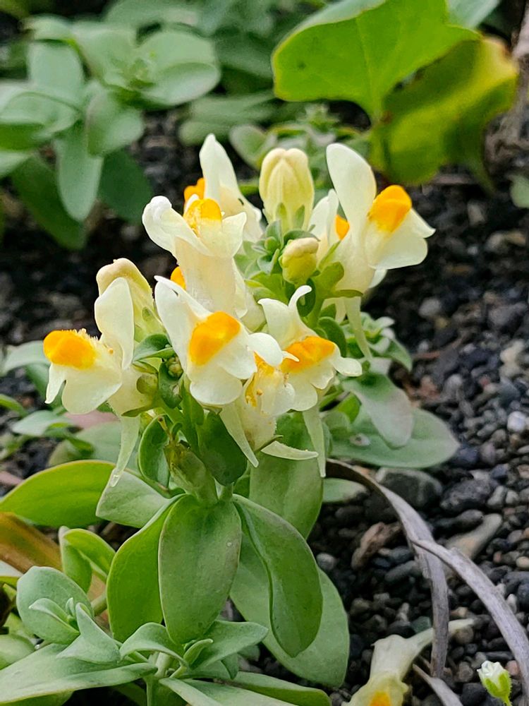 ✽花冠の先は上下2唇形に分かれ、下唇に濃い隆起部と細長い距がある