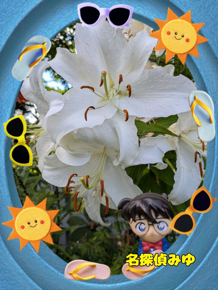 白い花はどれも涼しげで良いよね❗️縁取りも夏っぽくて良いね😊