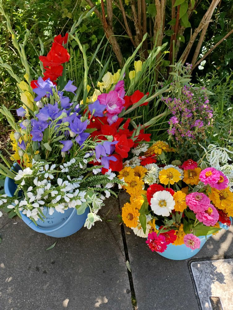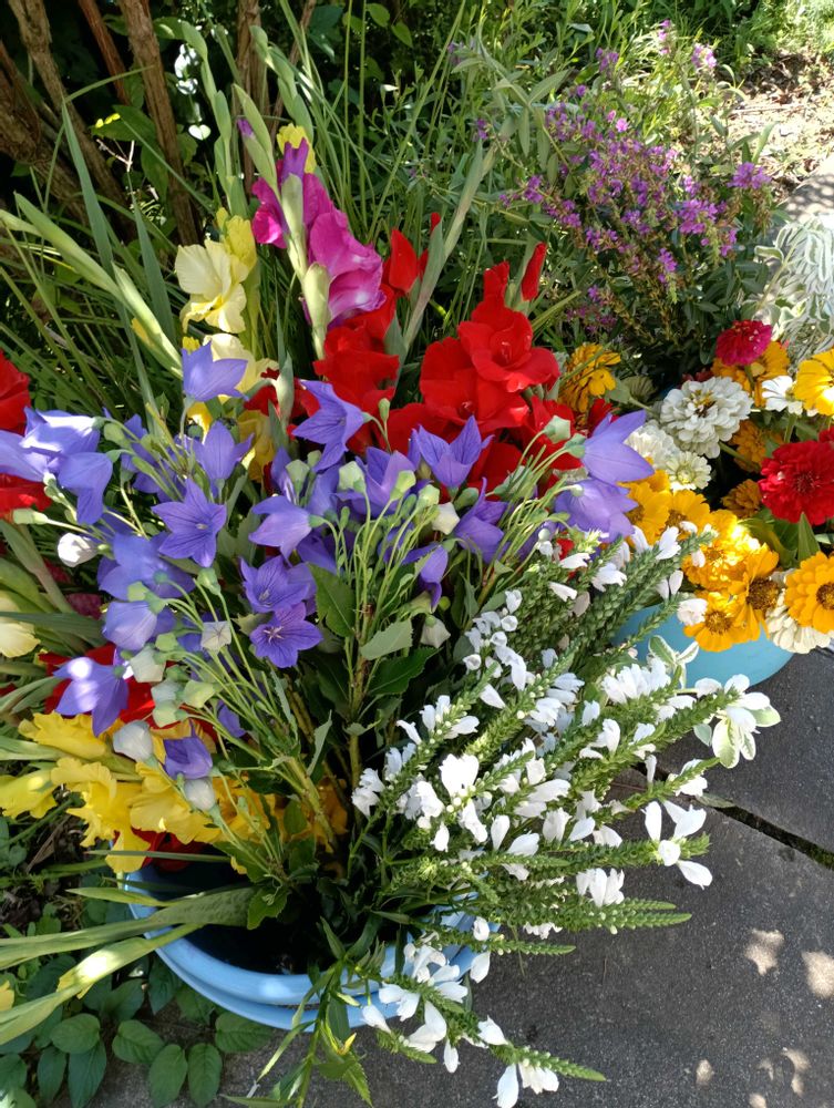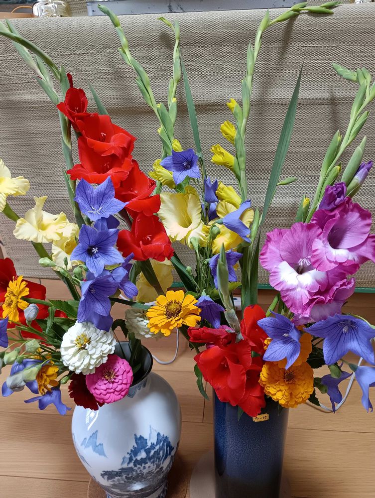 グラジオラスと百日草とキキョウで華やかになったかな😅