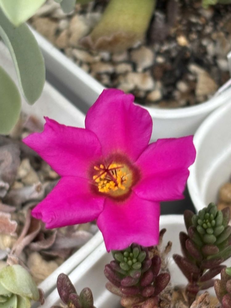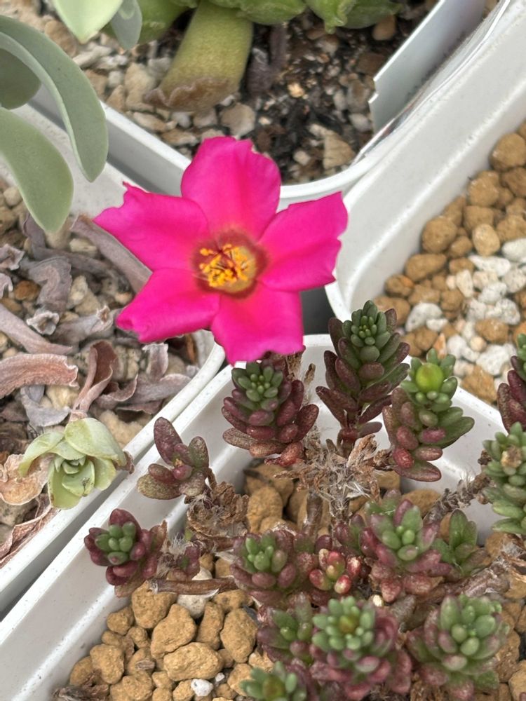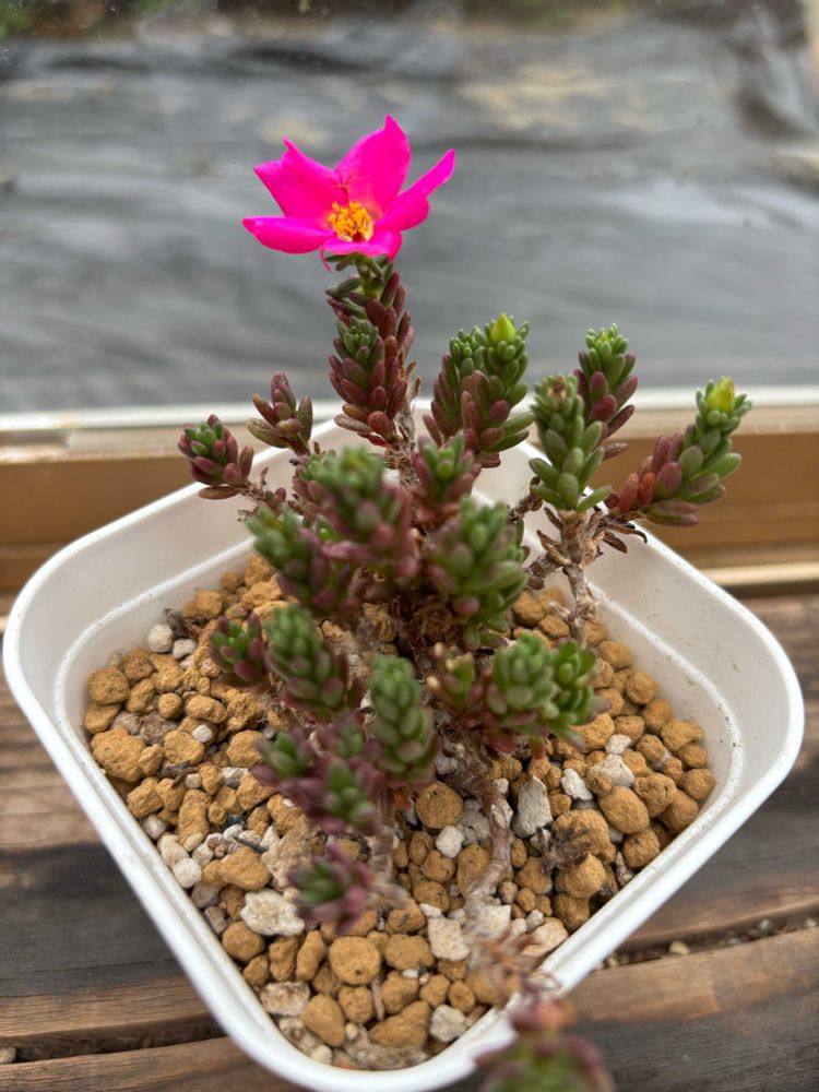 夏バテ気味の多肉さんの中で、濃いピンク🩷が際立ちます✨