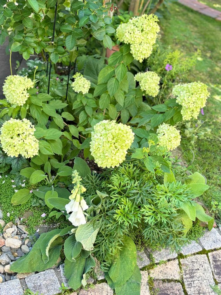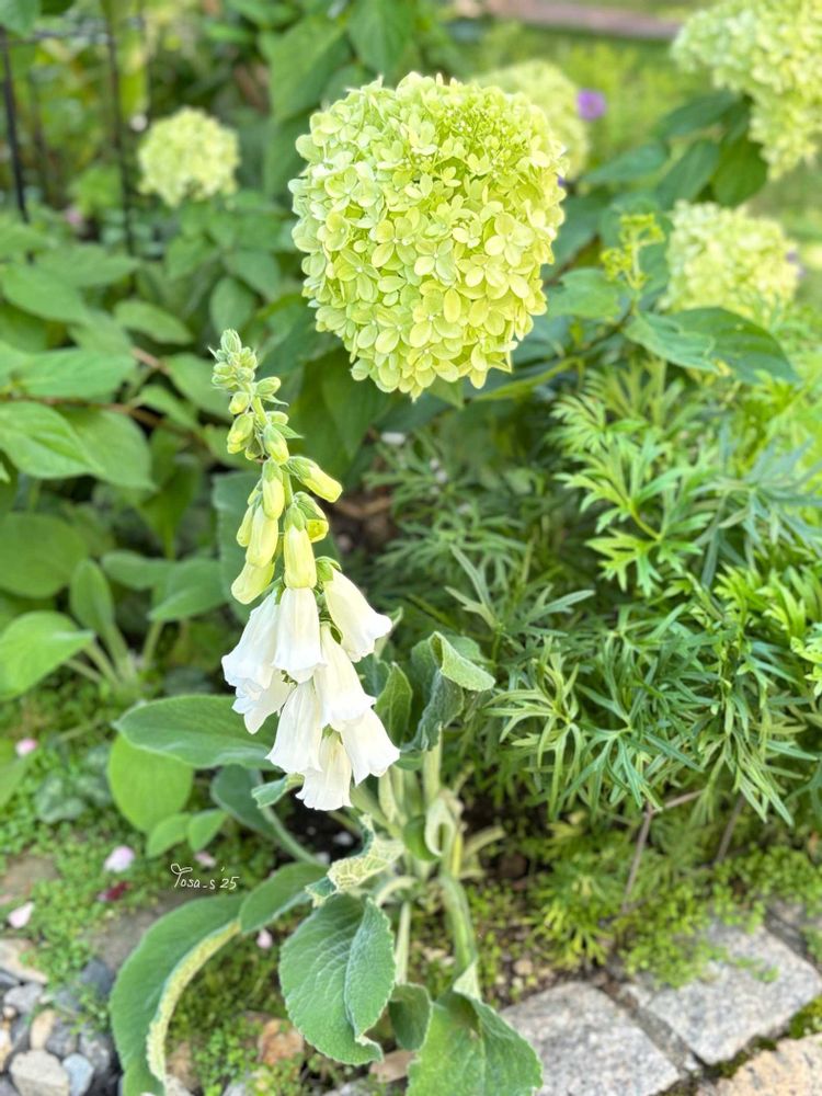 いつの間にかノリウツギ グランデライムチークの横の白いジギタリスが咲いていました🤍