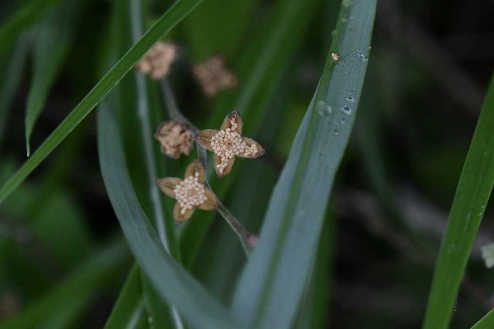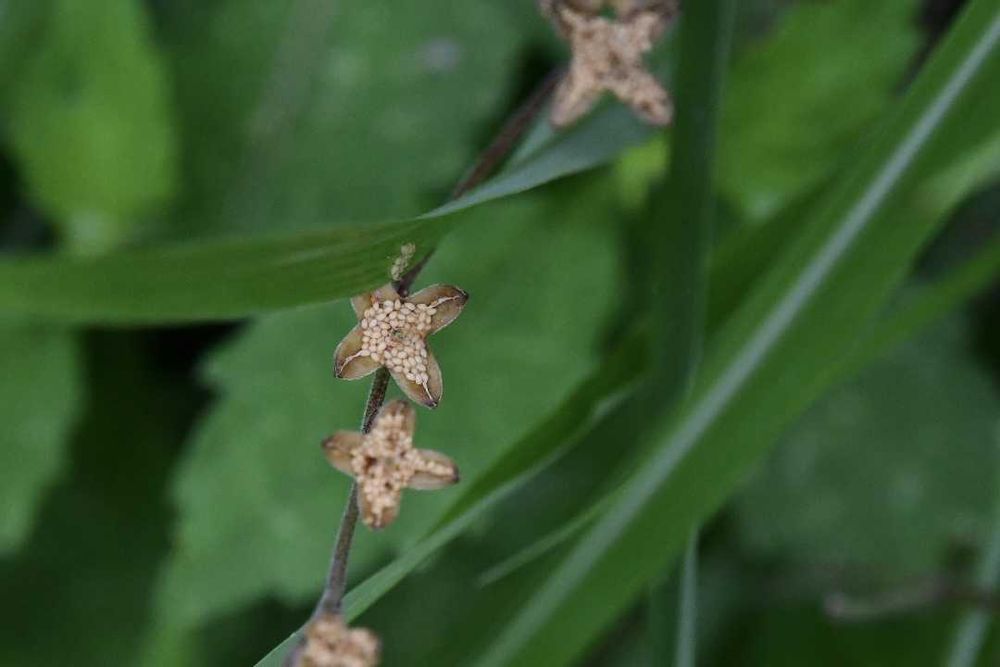 ネットで見ると閉じている果実は細長く地味、近づいてじっくり観察しないと気づかないと思います。