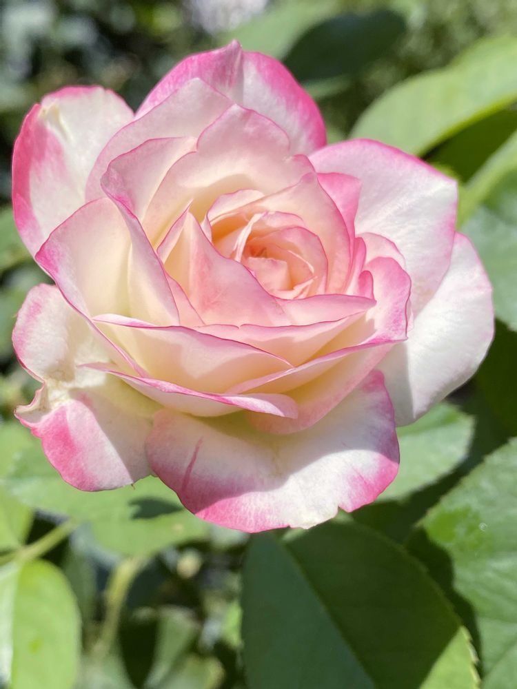 何日か雨が続いたので、陽射しが弱かったため、念願の薄いピンク色の縁取りのモナコさんが咲いてくれました╰(*´︶`*)╯♡