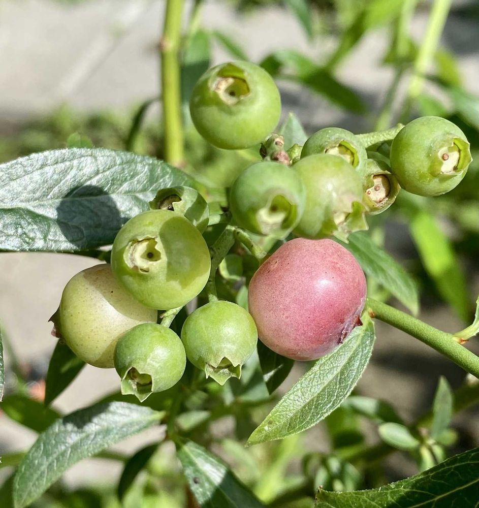 ピンク色の実がなる品種ですが、木を育てている段階なのでまだ着果が少ないです。