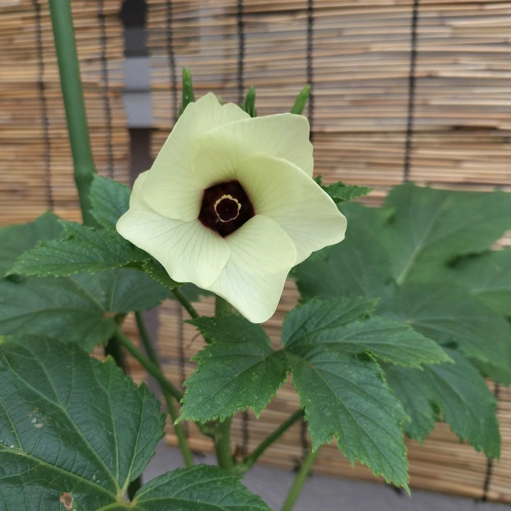 畑のオクラは主人の肩位の高さに育っていつまびっくり🫢