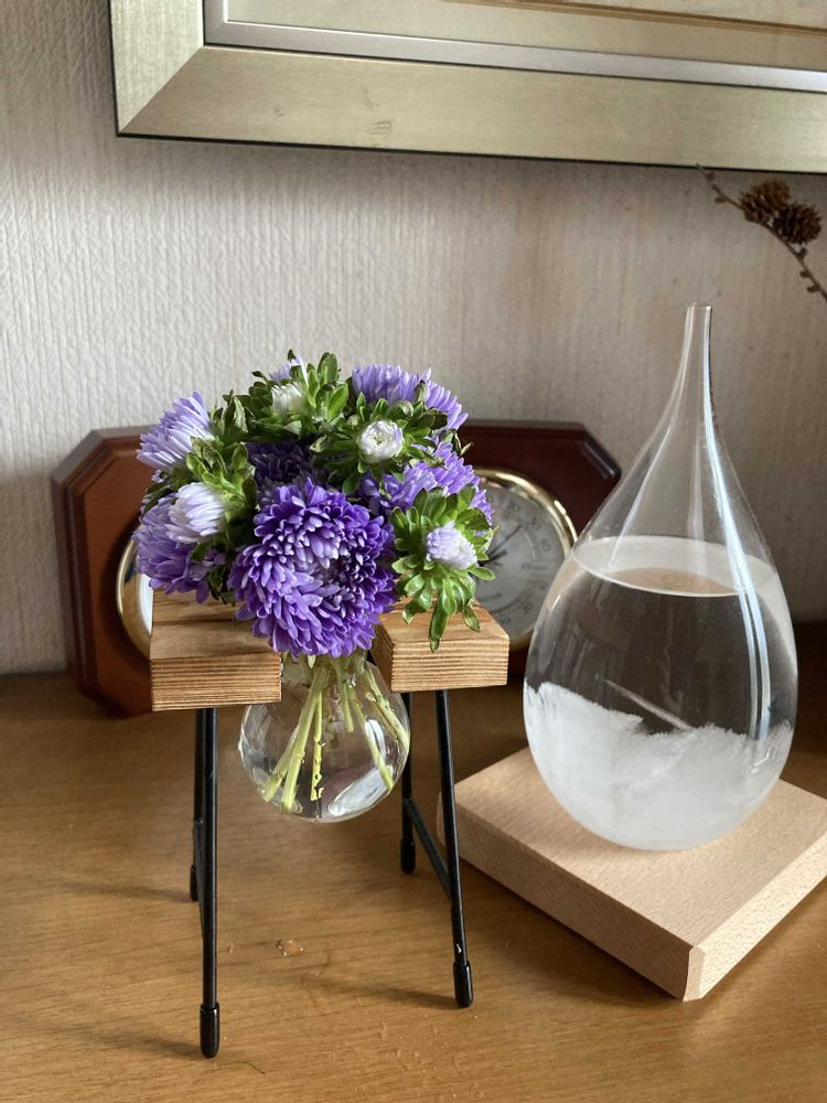 ストームグラスとお花、どちらも日々違った表情をみせてくれて、見ていて楽しいですよね