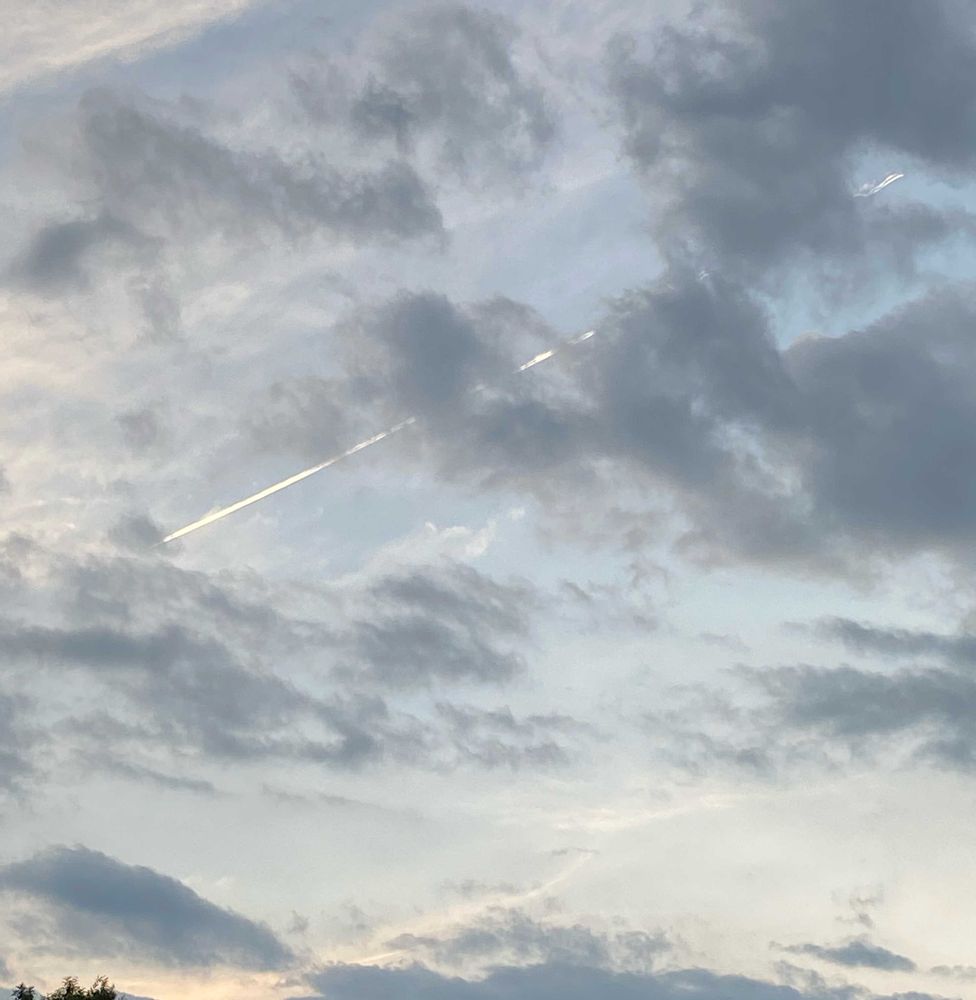 雲の合間の飛行機雲に癒された·͜·ᰔᩚ