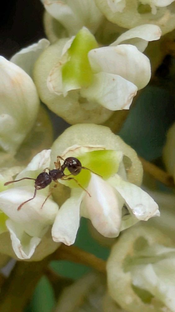 アリが盛んに蜜を集めている黄白色の花に出会う🐜