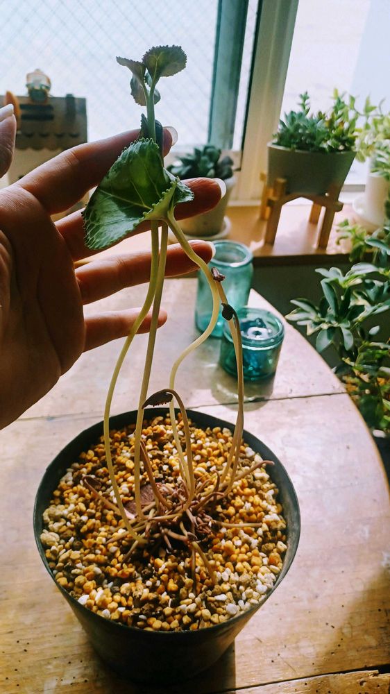 葉挿しに挑戦 親株は葉挿しの葉を取ったあと 枯れてしまいました⭐️ 今後はアプリで記録します