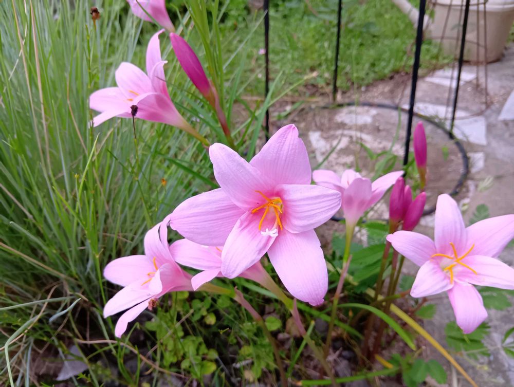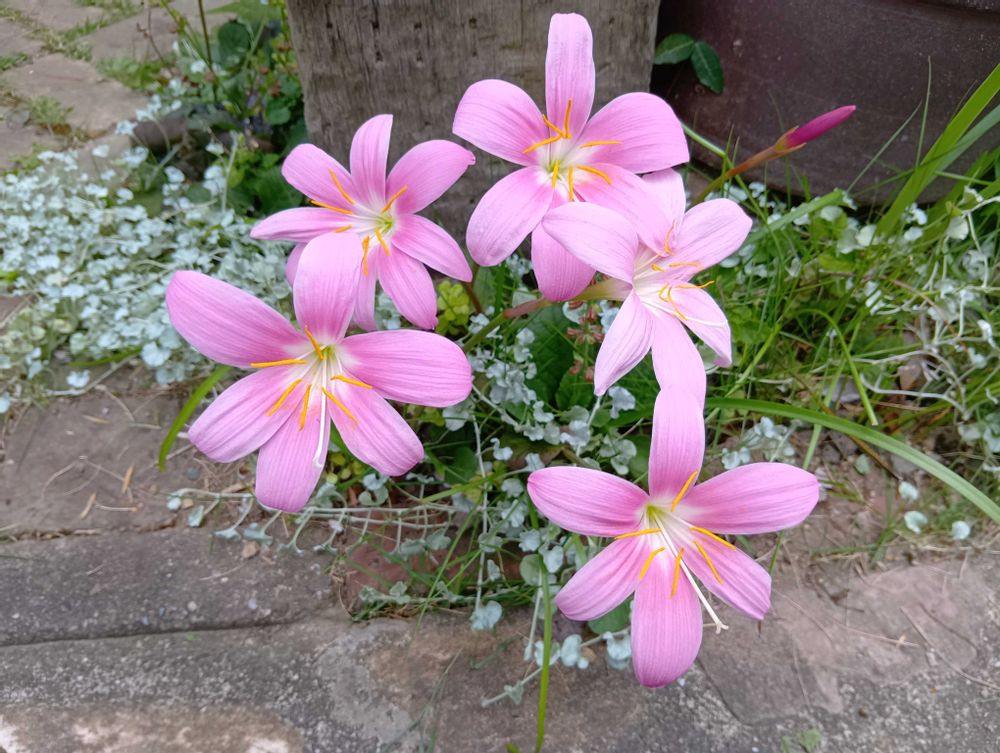 雨上りに咲くレインリリーと呼ばれるゼフィランサスとハブランサス🩷