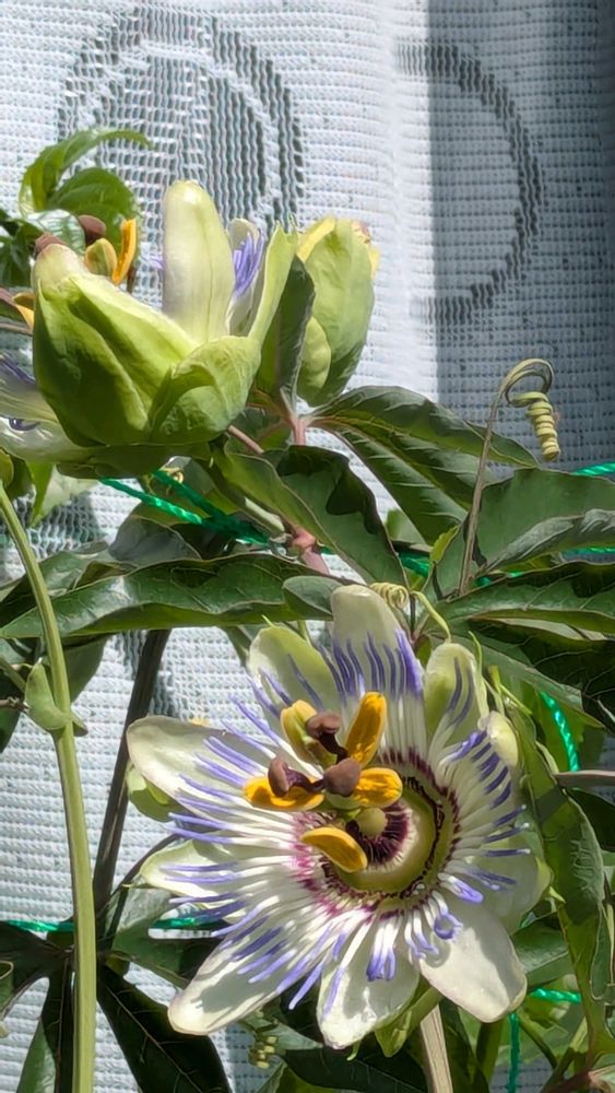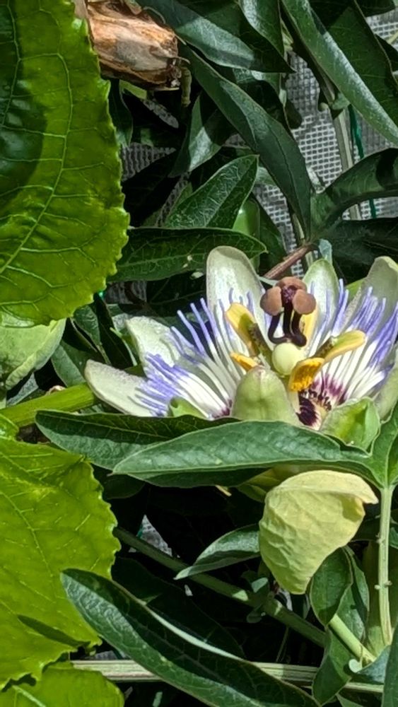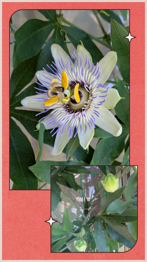 1️⃣車庫の後ろで咲かないトケイソウの花が1輪咲いてました🤩蕾も2個しかない(泣)
