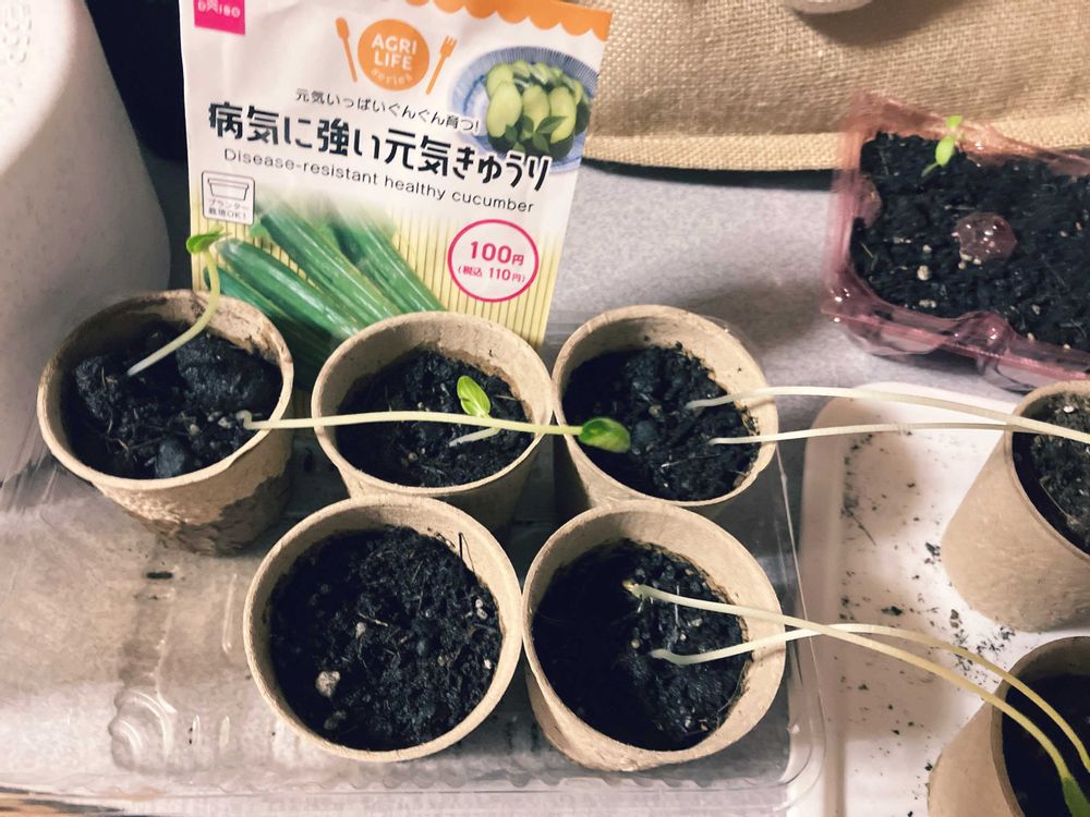 大雨洪水特別警報で夜中眠れなかったので、DAISOのきゅうりの種を植えて、気分転換していました。