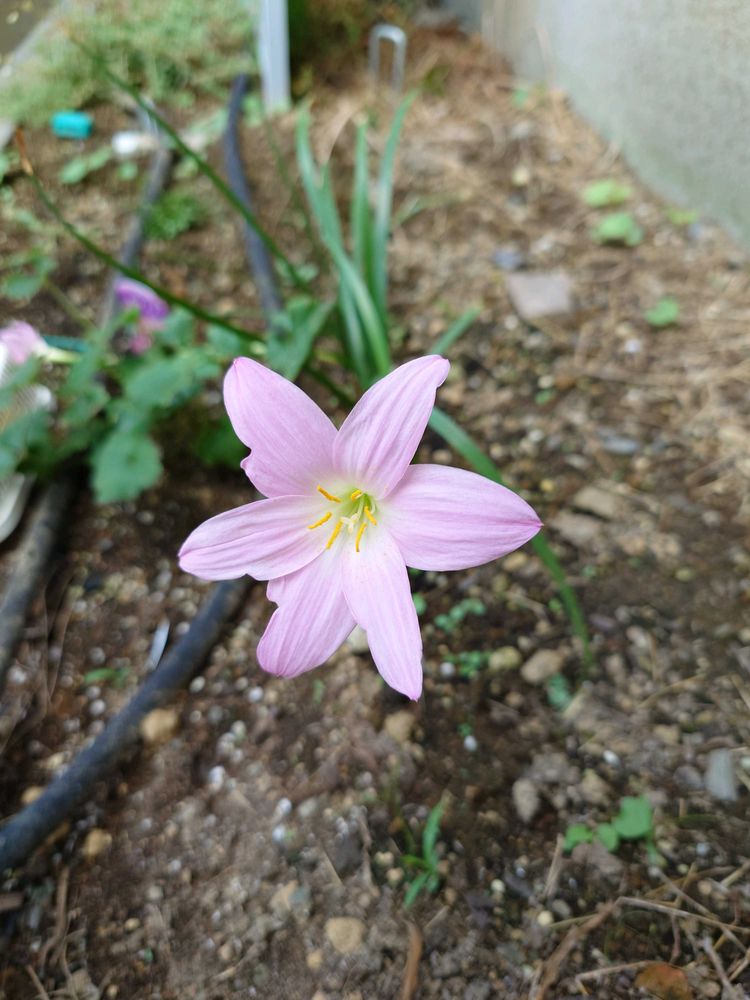 西日しか当たらない端っこの日陰不毛花壇に実験的に植えた球根のゼフィランサスアルジュナも初開花✨
