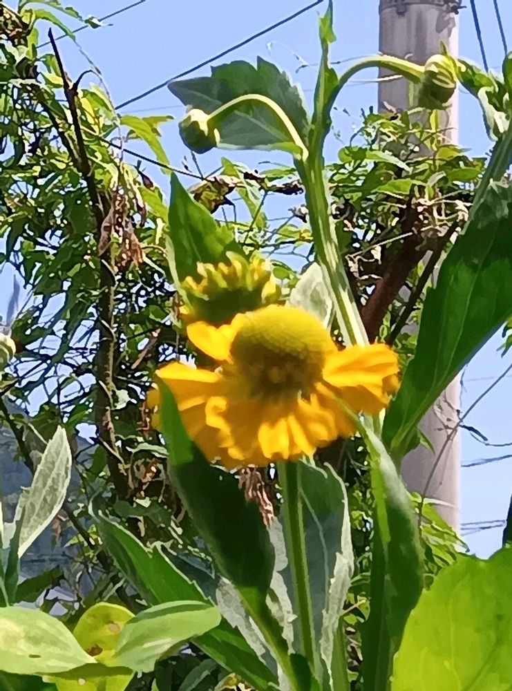 伸びるからカットしてたら又背丈以上に伸びてやっと咲き出しました。
