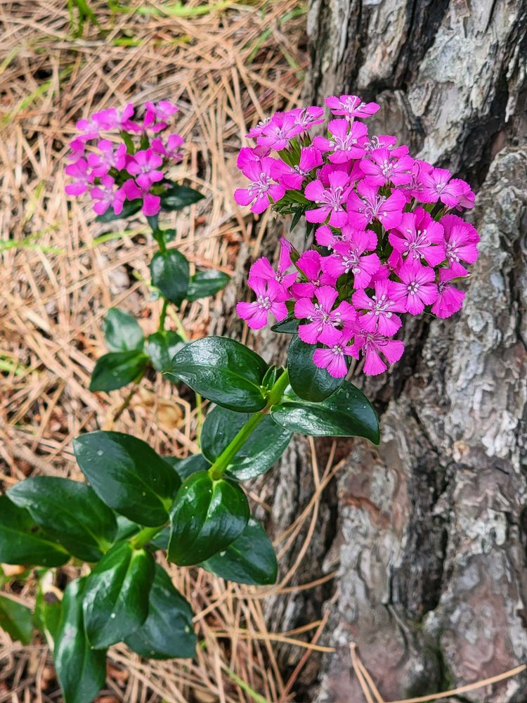 ハマナデシコ、海岸松林に綺麗に咲いているのが有りました。葉っぱが厚く艶々です。✌️