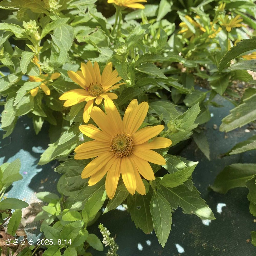 東庭花壇で頑張って咲いてくれた2年目のソレドオーロ🌻鮮やかなお花を次々と咲かせてくれるんだけど、どうやらこの子は美味しいらしいです😱