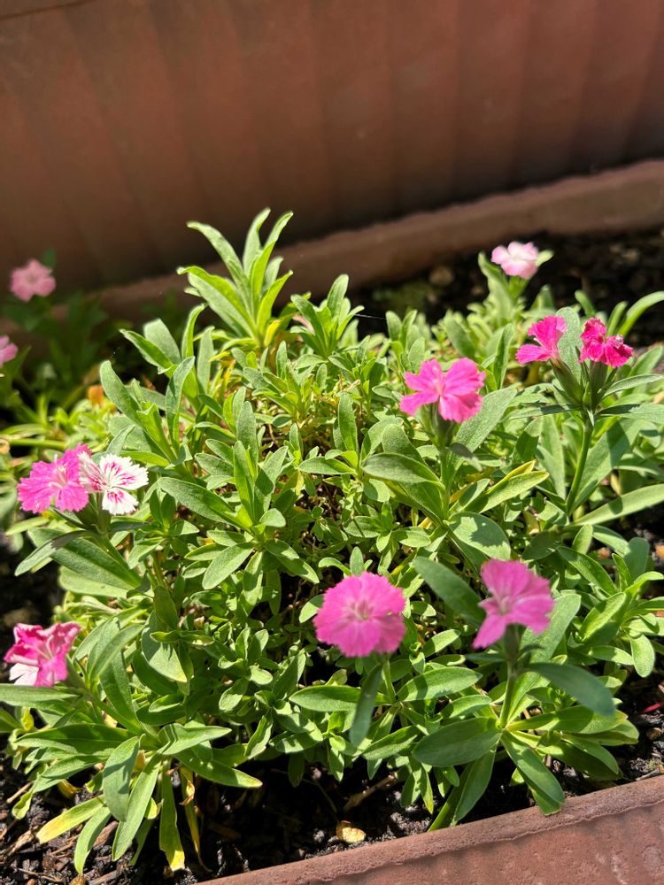 ①ダイアンサス『あなたにキュン』🩷、今朝ちょうど1輪咲きました👍✨1輪目はやはり小さめで可愛い😊💕