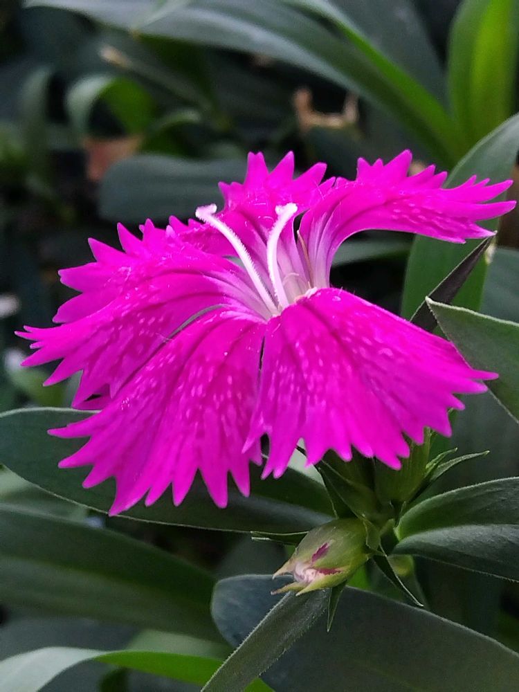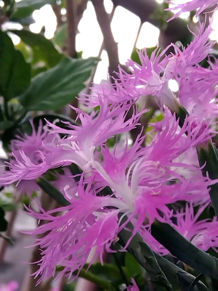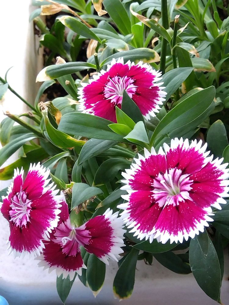 ベランダのプランターで咲いているナデシコ